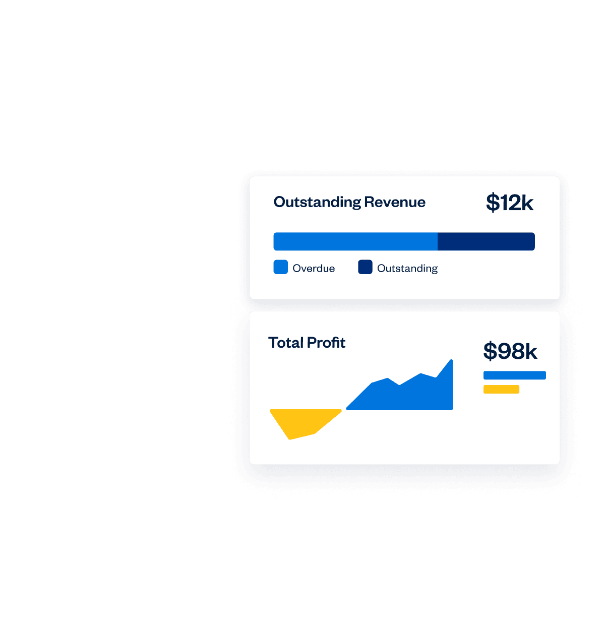 Staying in the black? Charging enough? Sometimes it can be a mystery where your business stands. Skip the stress and use FreshBooks’ insightful dashboards and reports. They’re full of valuable information to show you exactly what you need, at‑a‑glance.
