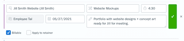 Start the timer to begin tracking your billable hours. Within each timer, you can add details like project, client, and task. This makes it easy to organize every time entry as you go, so you can include key information while it’s fresh in your mind.