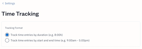 FreshBooks time tracking software offers 2 formats for tracking billable hours: duration and start/end time. Duration tracks your billable hours in hours and minutes, while start/end time uses your beginning and end times to calculate your total time worked on a particular task.