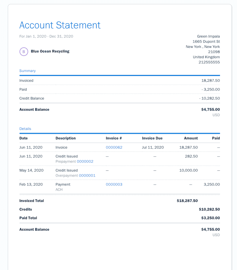 Credits are also directly linked to each of your client’s Account Statements. This makes it easier for you to keep track of all Credits and credit balance tied to specific clients, so you’ll know exactly where they stand financially. This makes it easy to ensure your accounts receivable is accurate for each customer account.